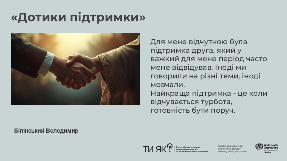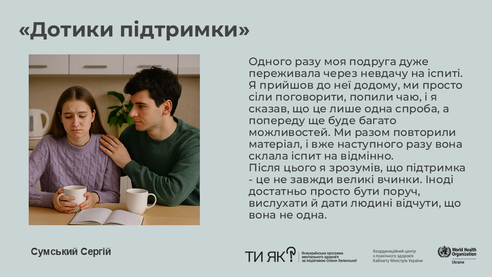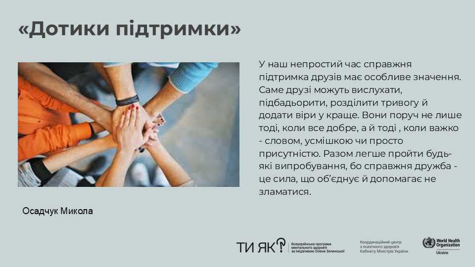 Кожен слайд нашої студентської презентації – це щирий дотик серця, нагадування, що бути поруч – уже багато. Студенти поділилися моментами, коли підтримка допомагала триматися, надихала, давала сили й віру у себе та в інших.