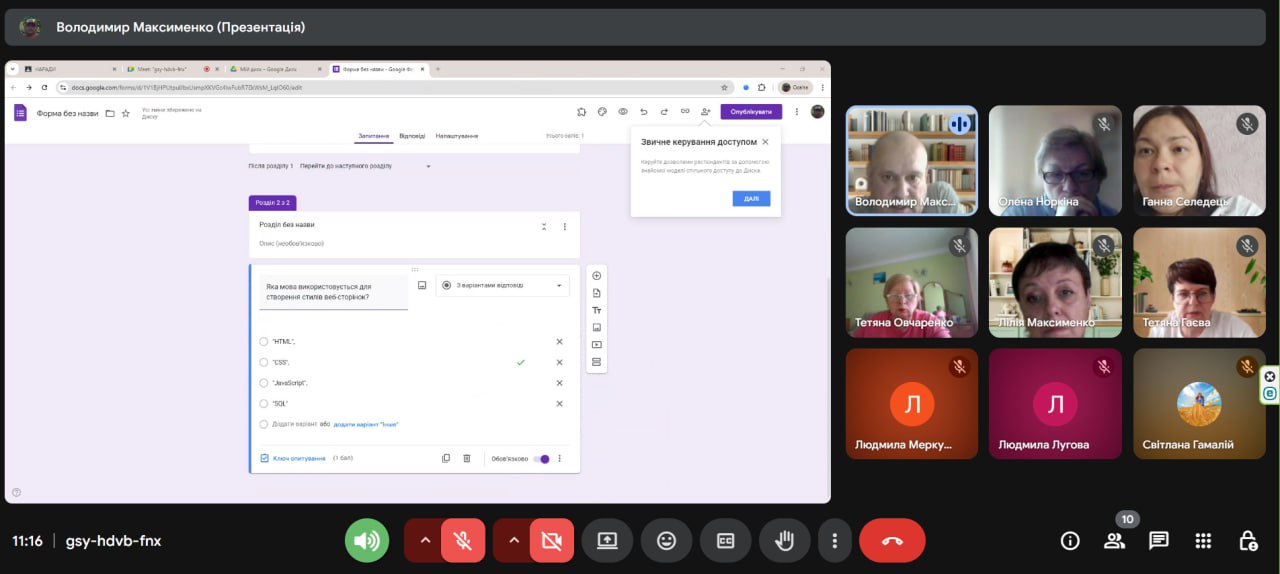 У межах роботи семінару «Цифрова педагогіка: від інструменту до взаємодії» у коледжі відбулося перше заняття поточного навчального року на тему «Google Форми як інструмент тестування та збору аналітики».