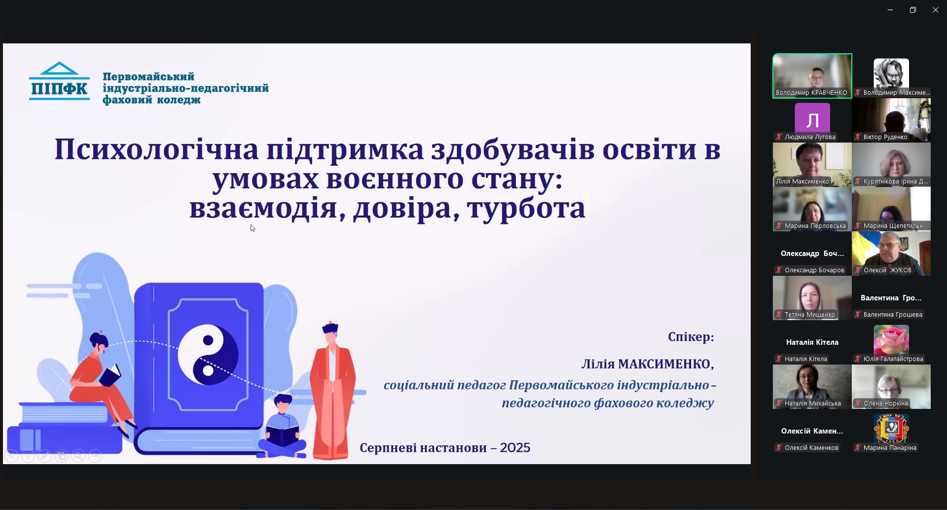 29 серпня 2025 року в рамках роботи освітньої платформи для педагогічних працівників закладів професійної (професійно-технічної) та фахової передвищої освіти Луганщини «Серпневі настанови – 2025» виступила соціальний педагог коледжу Лілія Вікторівна Максименко.