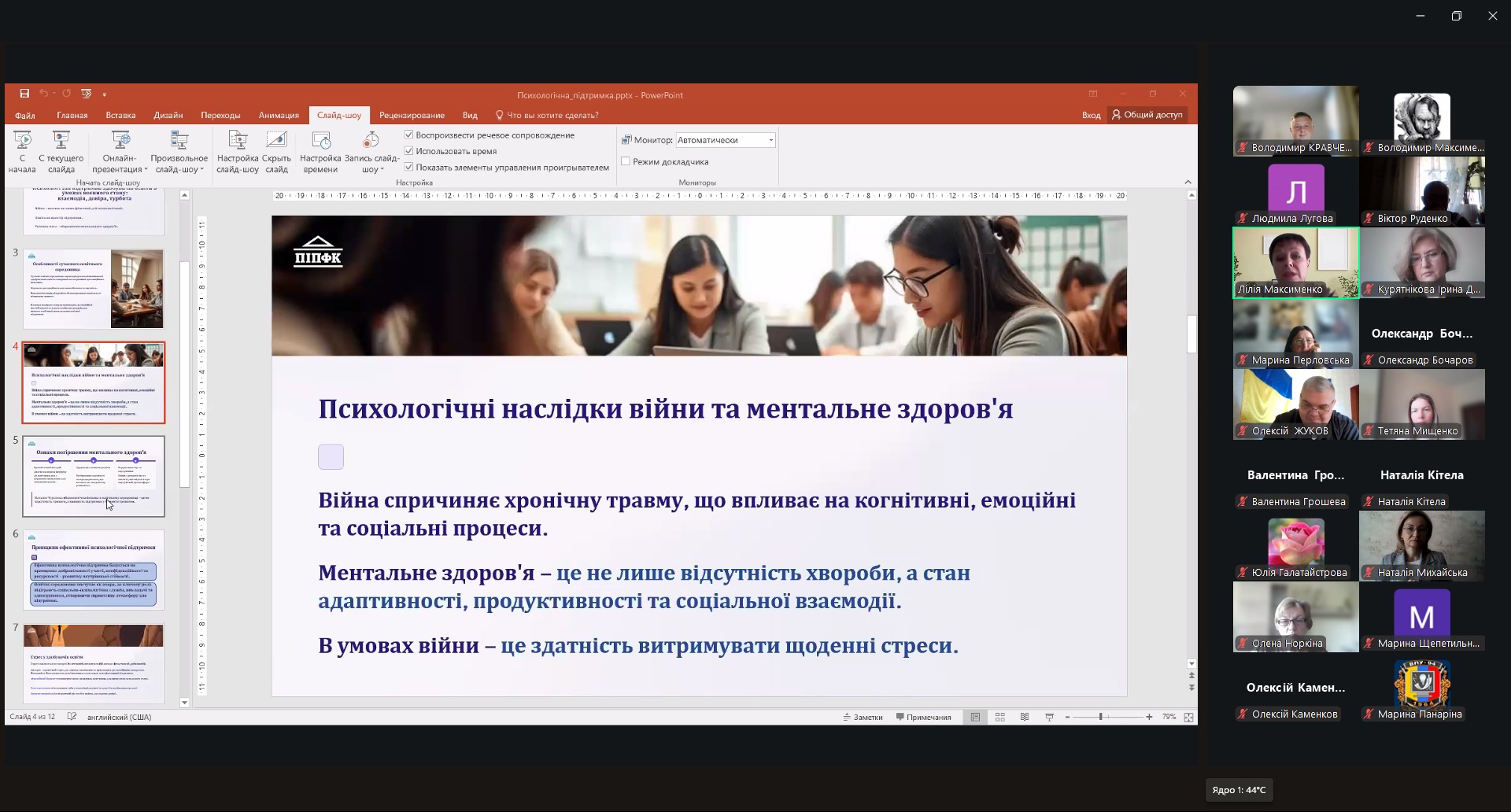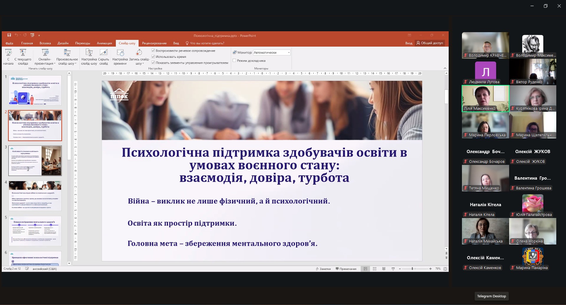 Доповідачка поділилася досвідом організації практичних заходів із підтримки учасників освітнього процесу в коледжі. Наголосила, що психологічна підтримка — це інвестиція у майбутнє, яка сприяє формуванню стійкого, вмотивованого та відповідального покоління фахівців.
