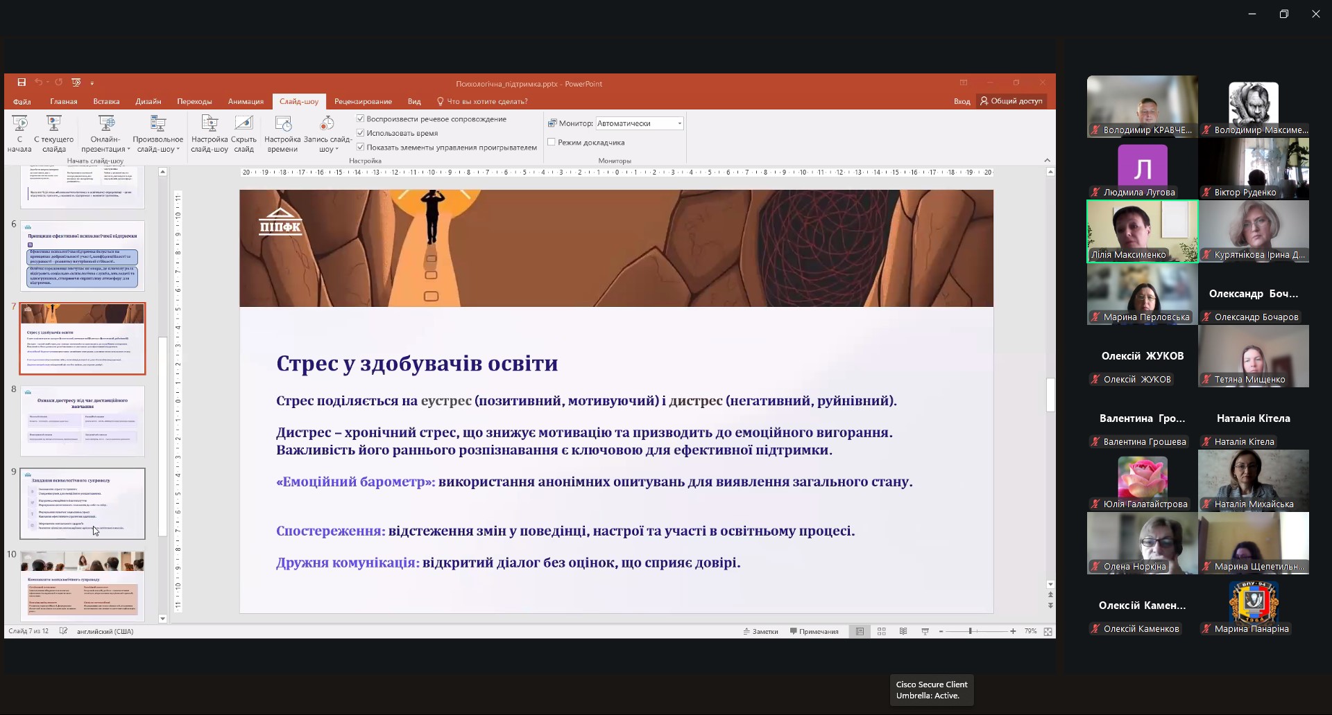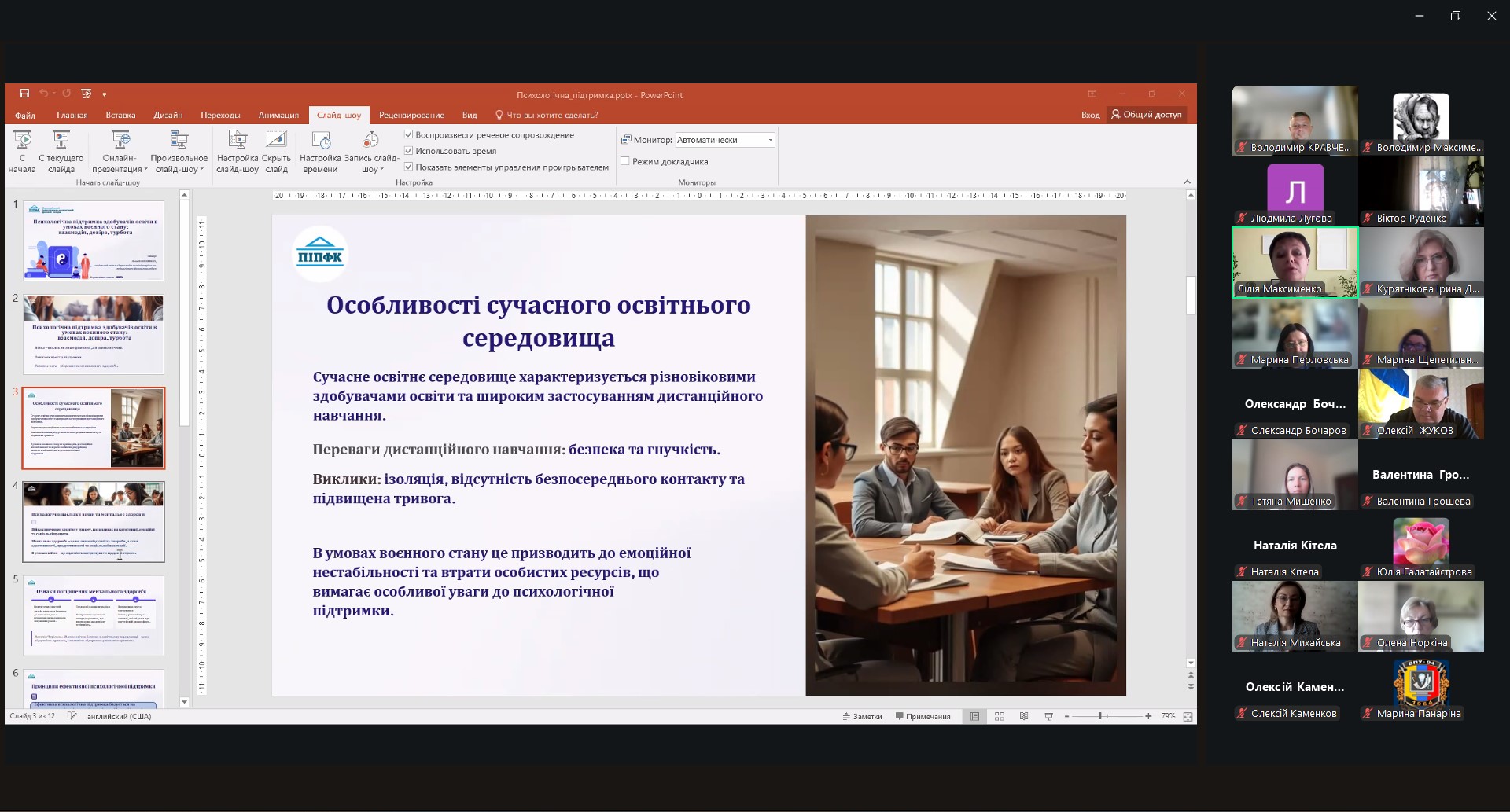 Звернула увагу на виклики, пов’язані із підвищеним рівнем стресу, тривожності та емоційної нестабільності серед здобувачів освіти, які навчаються дистанційно.