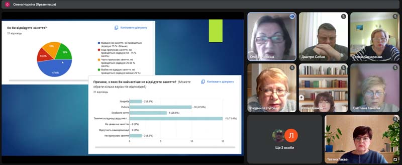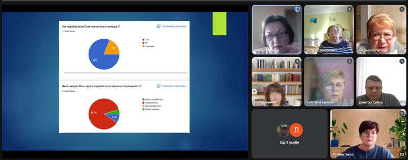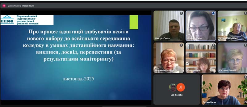 У ході засідання було розглянуто низку важливих питань, серед яких особливу увагу приділили процесу адаптації першокурсників до освітнього середовища коледжу в умовах дистанційного навчання. З аналізом результатів моніторингу виступила Норкіна О.В., відповідальна за роботу зі здобувачами освіти. Моніторинг показав, що більшість студентів позитивно оцінюють навчання та обрану спеціальність, проте водночас стикаються з труднощами — великим обсягом матеріалу, проблемами самоорганізації та технічними бар’єрами. Викладачі та куратори поділилися досвідом підтримки студентів, а практичний психолог Максименко Л.В. наголосив на важливості розвитку навичок тайм‑менеджменту, зниження тривожності та формування студентських колективів навіть у дистанційному форматі.