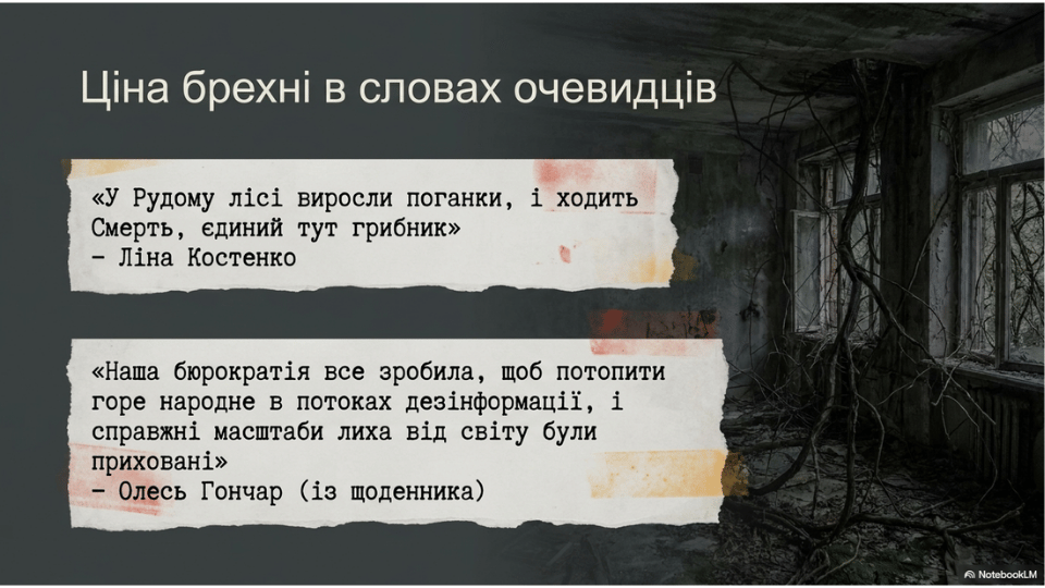 Сьогодні Чорнобиль є не лише символом трагедії, а й застереженням для всього людства. Він нагадує про необхідність відповідального використання технологій, важливість відкритості інформації та пріоритет людського життя над політичними чи економічними інтересами.