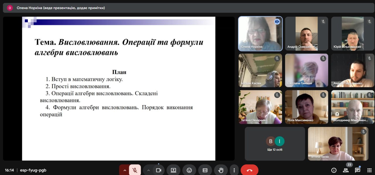 19 березня 2026 року свою професійну майстерність продемонструвала викладачка математики Норкіна Олена Володимирівна. Заняття відбулося у групі 12 ПО ЦТ. Тема заняття — «Висловлювання. Операції над висловлюваннями» — є фундаментом математичної логіки, яка, своєю чергою, лежить в основі багатьох сучасних дисциплін, зокрема програмування та інформаційних технологій.