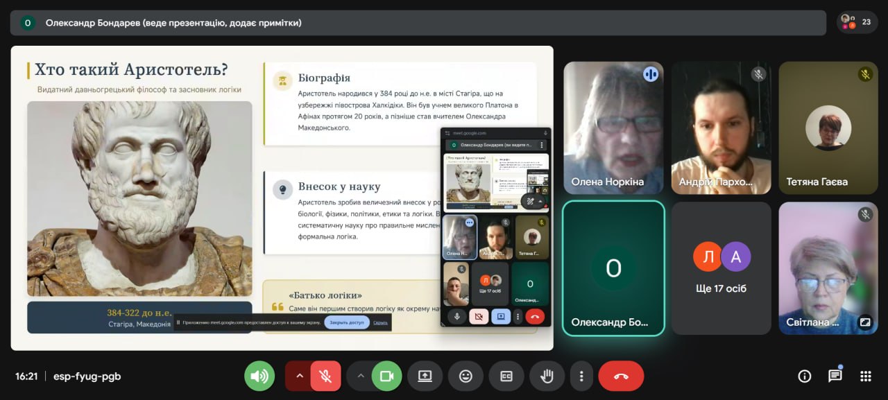 Заняття розпочалося з мотиваційного блоку — філософського питання: «Чи завжди люди розуміють один одного?». Це дозволило підкреслити важливість точних формулювань і логічних міркувань, які людина використовує в повсякденному житті під час аналізу інформації та прийняття рішень.