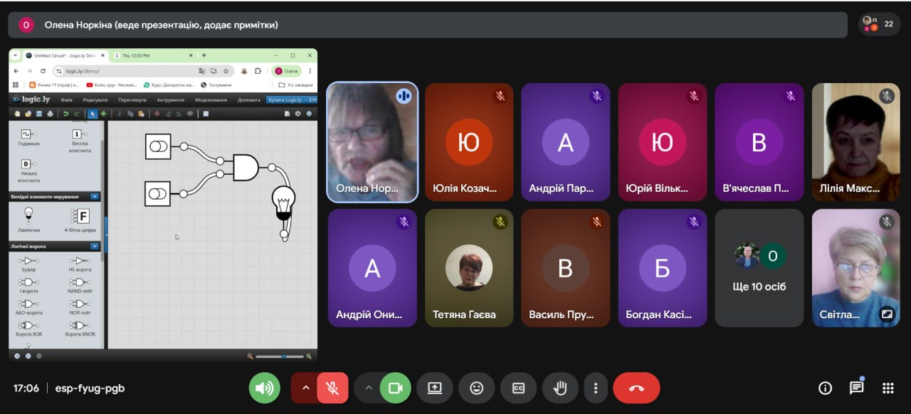 Під час вивчення операцій алгебри висловлювань викладачка використала симулятор логічних схем, що дало змогу візуалізувати складні абстрактні поняття та продемонструвати їх практичне застосування.