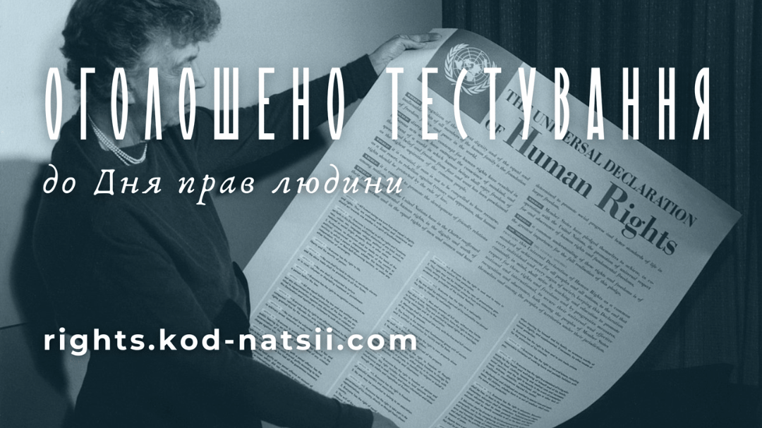 Освітньою платформою Національного Фестивалю «Код Нації» оголошено проведення Тестування до Дня прав людини, який в світі відзначається 10 грудня на згадку про прийняття Загальної декларації прав людини у далекому 1948 році, що стала основою для захисту свобод і прав кожної людини.