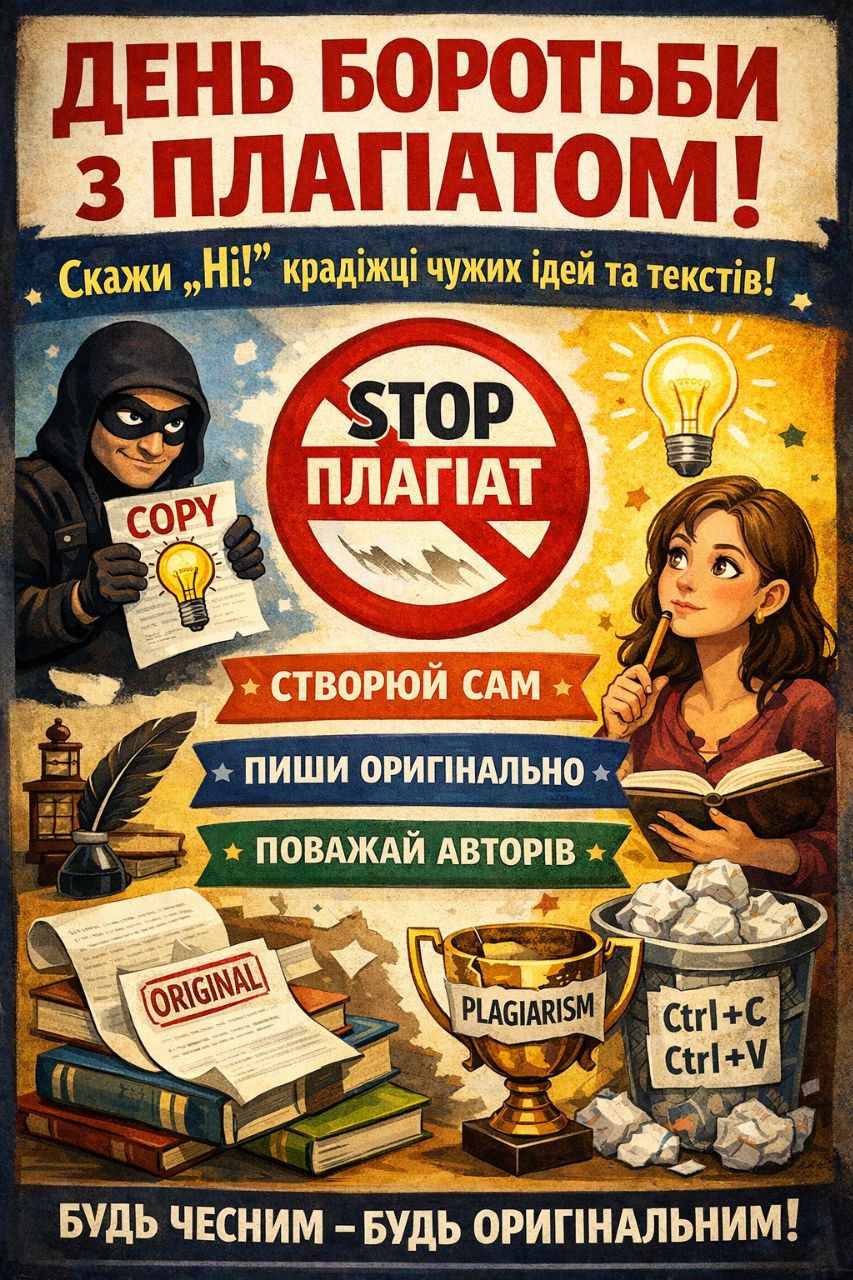 У Первомайському індустріально-педагогічному фаховому коледжі завершився загальноколеджівський конкурс плакатів, приурочений до міжнародного Дня запобігання плагіату, який відзначався 19 лютого.