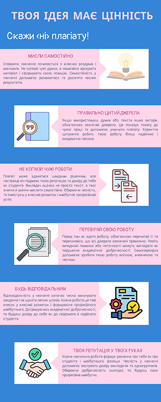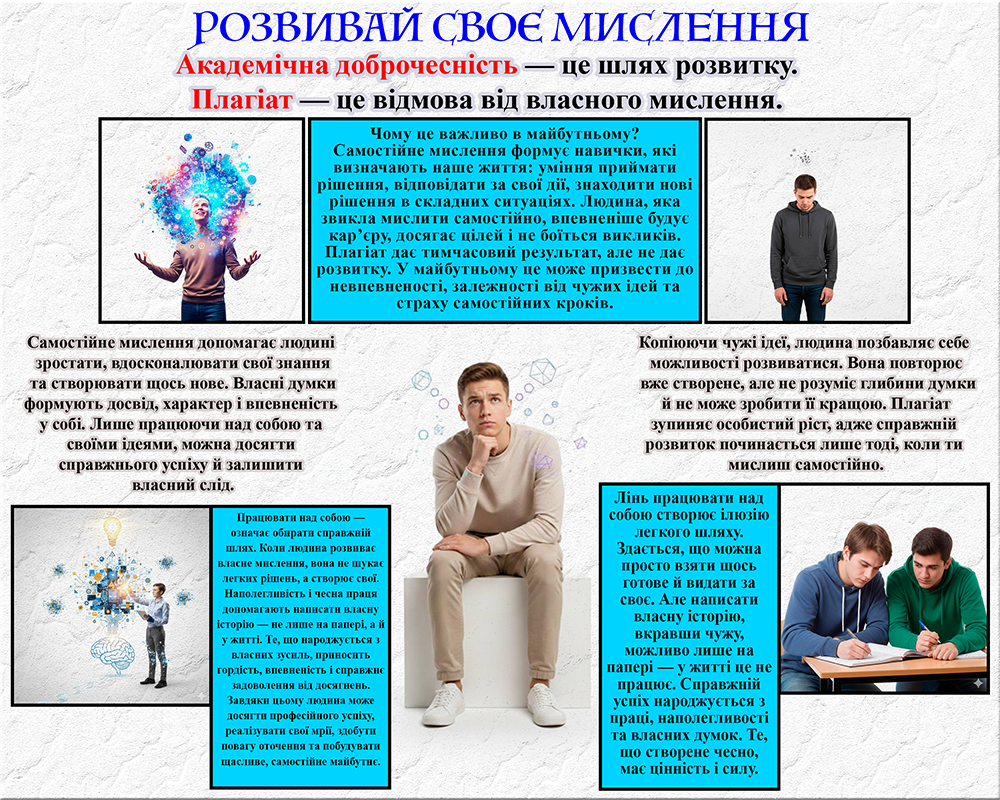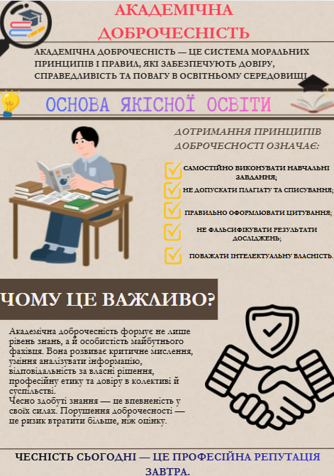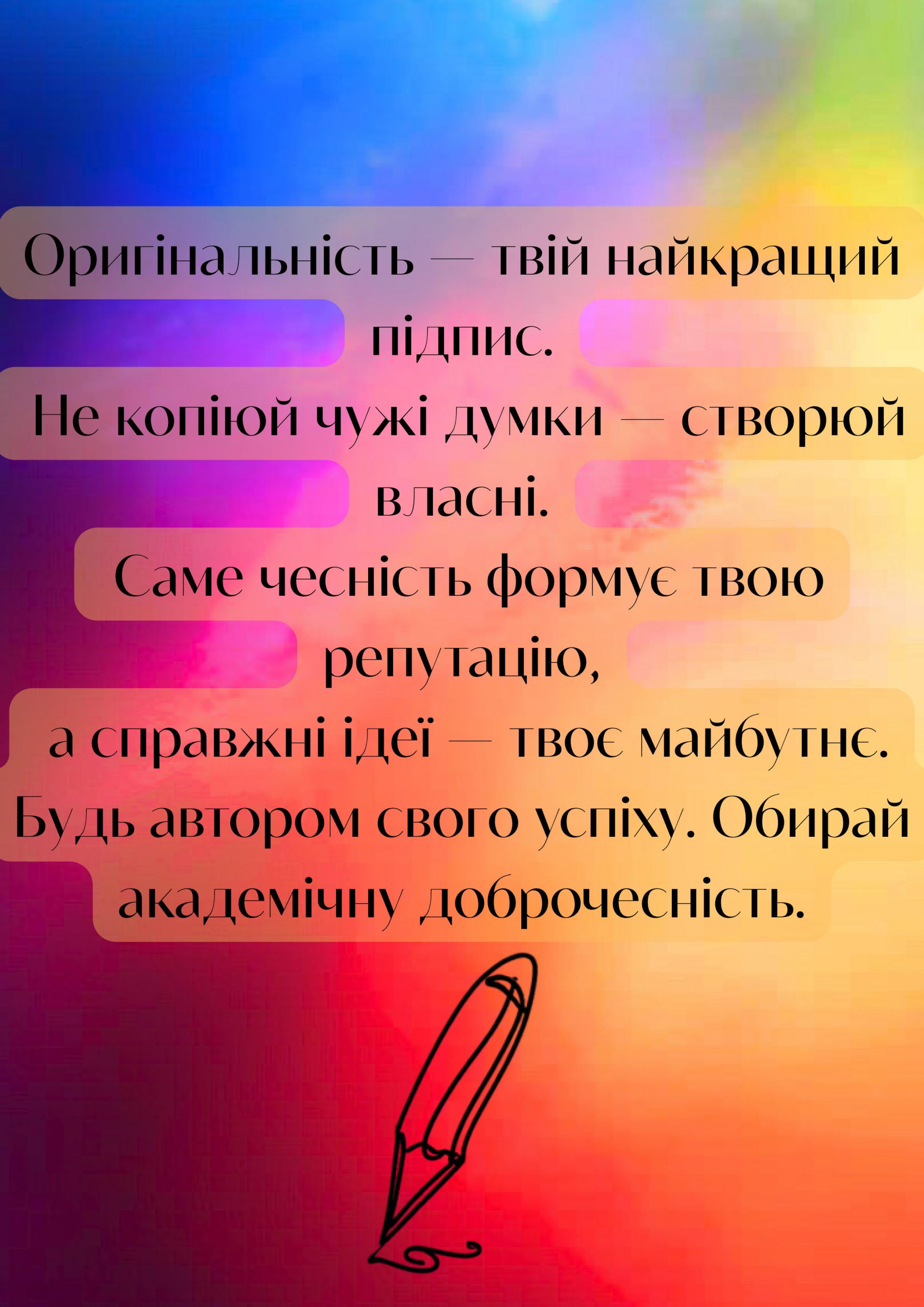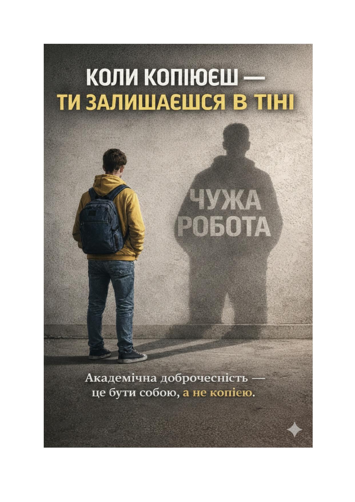 Михайло Гоцуляк (група 22 ПО ЦТ) — робота «Академічна доброчесність — основа якісної освіти» (авторський дизайн).