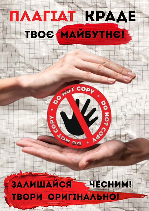 Олександр Бондарев (гр. 22 ПО ЦТ) — робота «Плагіат краде твоє майбутнє» (авторський дизайн).