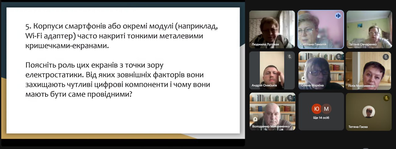 Заняття розпочалося з перевірки знань за темою «Конденсатори та їх застосування у цифровій техніці». Студенти продемонстрували впевнене володіння матеріалом, опрацьованим самостійно, детально розповівши про роль конденсаторів у роботі комп’ютерних систем та сучасних гаджетів. Для закріплення вивченого було проведено інтерактивну вікторину за темою «Електричний заряд. Електричне поле», яка в ігровому форматі активізувала увагу аудиторії та допомогла перевірити розуміння ключових понять.